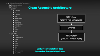 URF.Unity handles rendering, input, and UI.